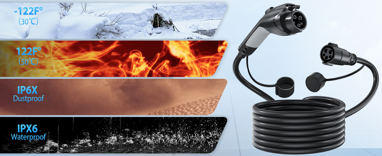 This construction makes the cable suitable for year-round outdoor charging as well as indoor garage setups.