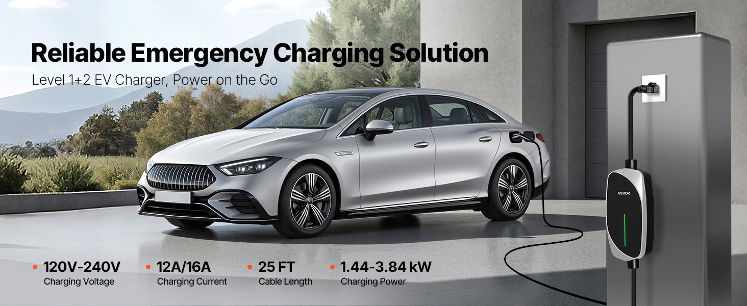 VEVOR Level 1&2 EV Charger, 16 Amp, Electric Vehicle Portable Charger with 2 …