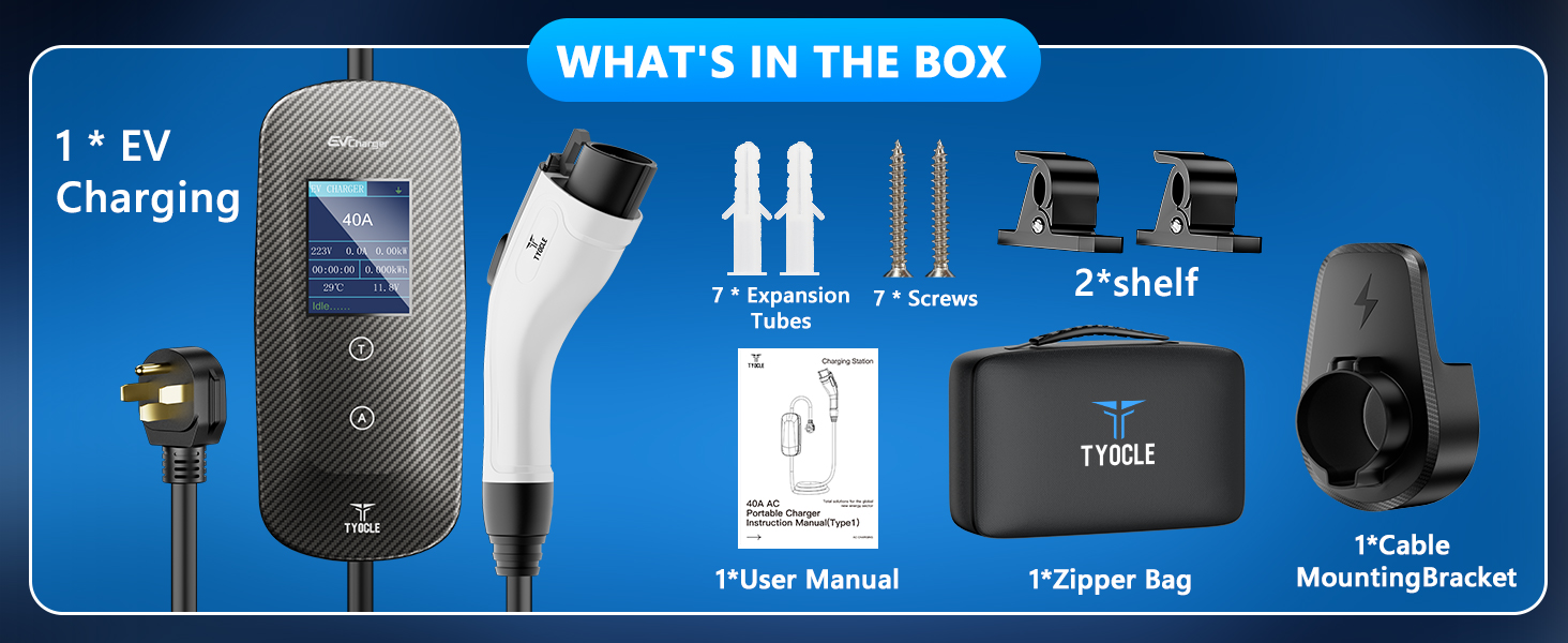 Portable Level 2 EV Charger (40Amp, 240V, NEMA 14-50P) with 23 Ft Cable. The Mob …