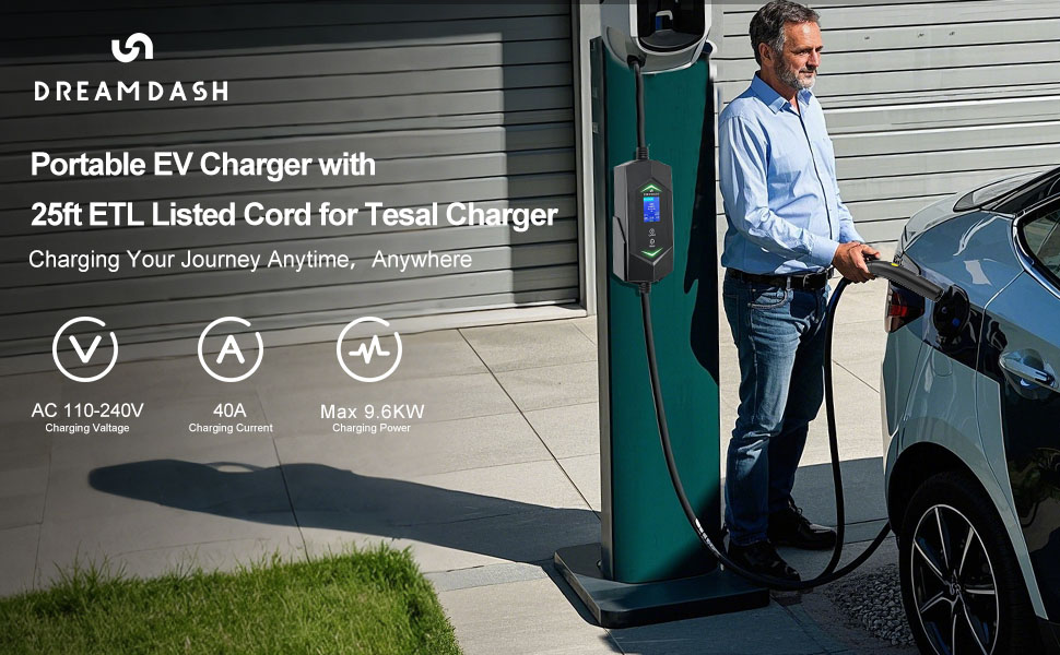 Level 2 Ev Charger for Tesla,NACS Ev Charger with 25ft ETL Listed Cord,6A-40A Ad …