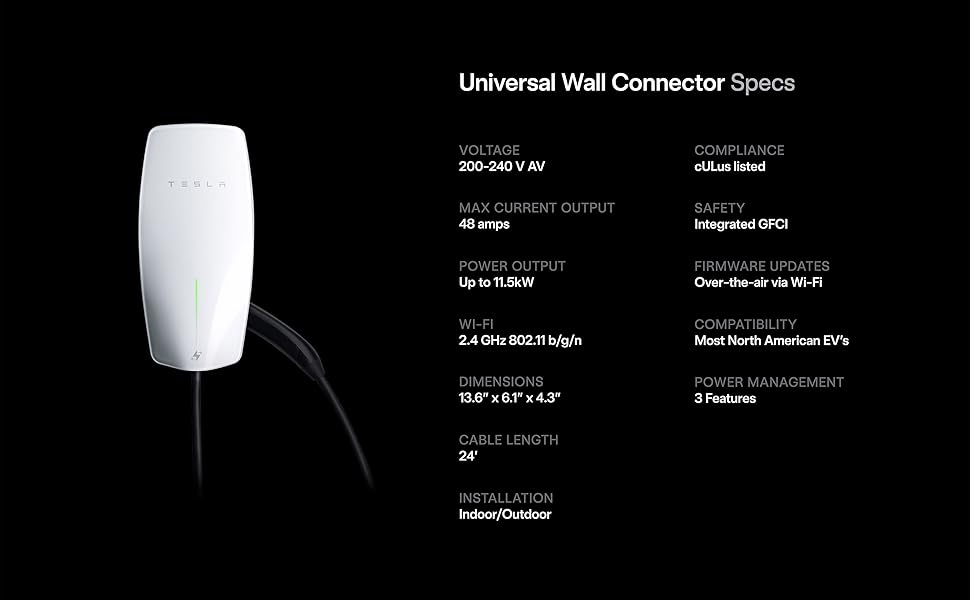 Tesla Universal Wall Connector – Dual Plug (NACS + J1772), 48A Level 2 Charger